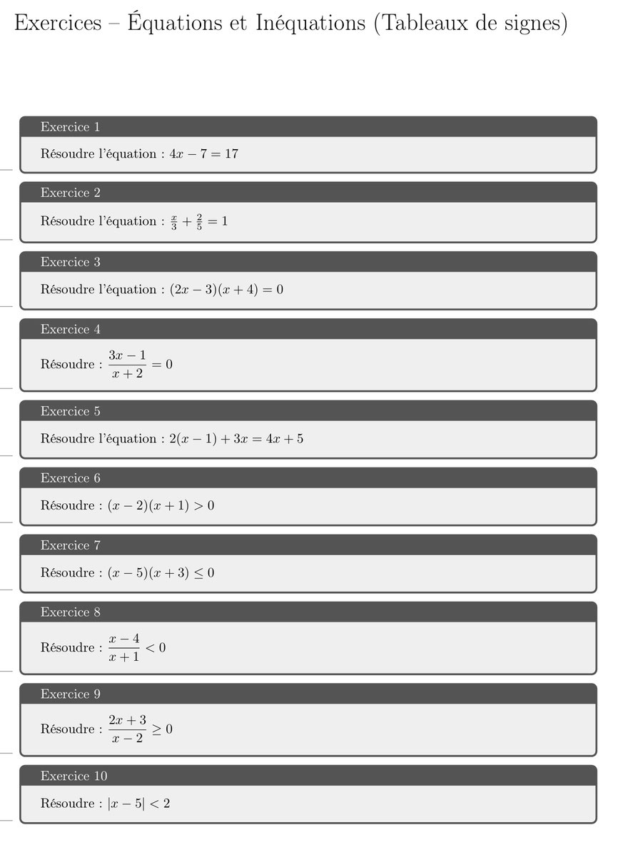 5. Résoudre l'équation suivante: (x - 2)(3x + 5) = (x - 2)(x - 4)